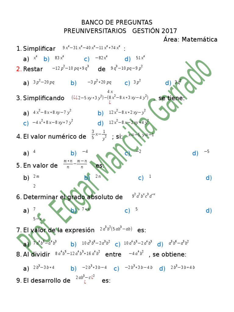 Banco De Preguntas Preuniversitarios 2017 Pdf Geometria Euclidiana Notacion Matematica