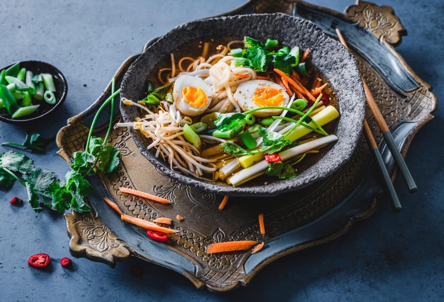 Ramen Mit Ei Schweinefilet Und Spinat Rezept Fit For Fun